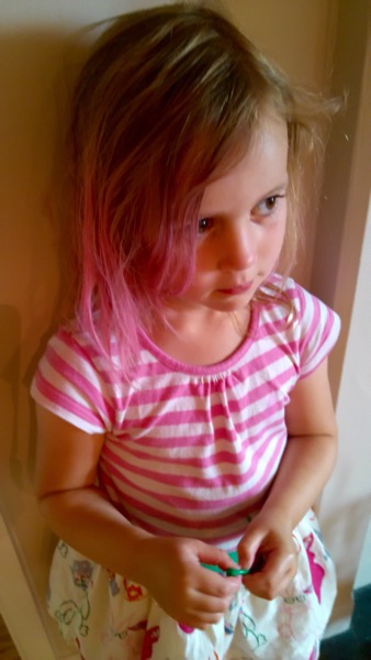 In the 8 minutes I was on the phone to Mum, Lucy managed to dye her hair pink…
