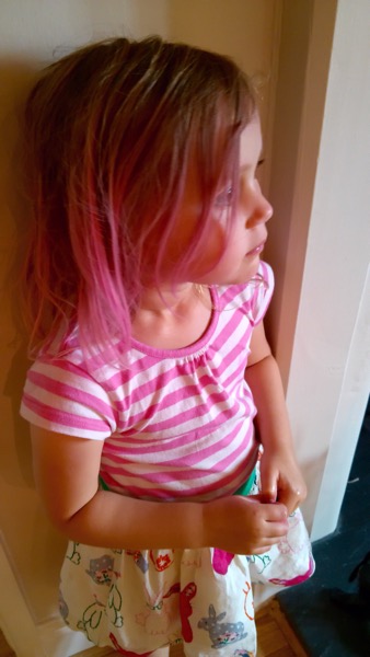 3 Responses to In the 8 minutes I was on the phone to Mum, Lucy managed to dye her hair pink…