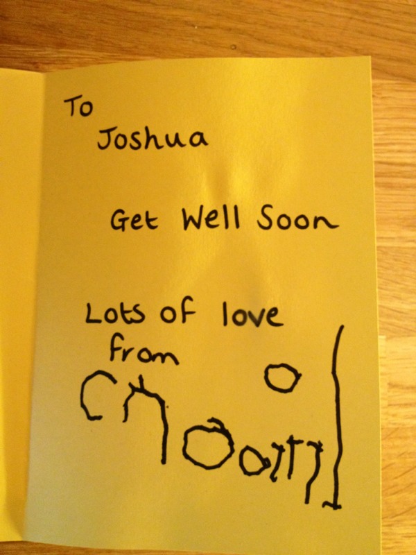 Charlotte’s friend from preschool is in hospital so she has made him a card today x
