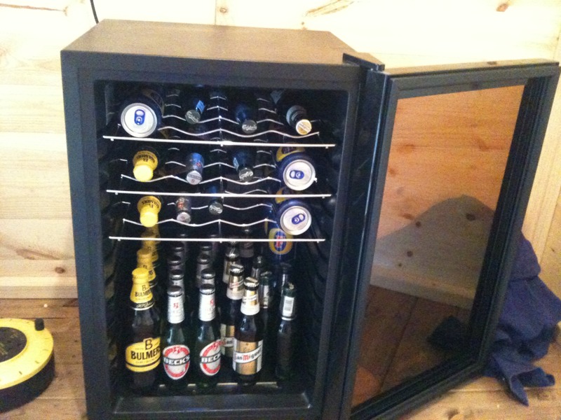 2 Responses to Electrics are done, so we have beer in the fridge in the ‘man’ shed!