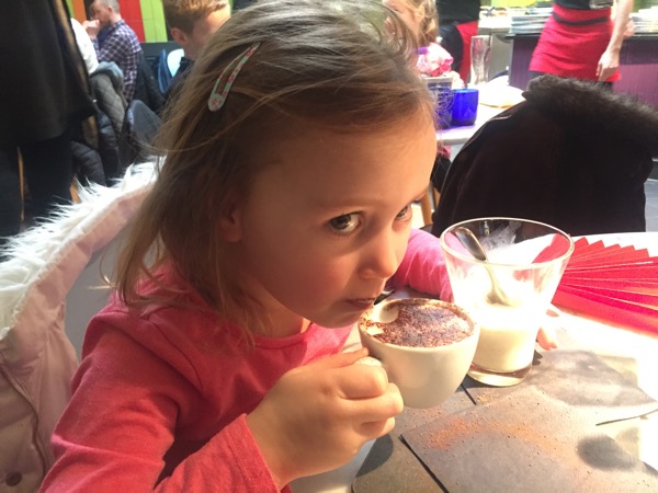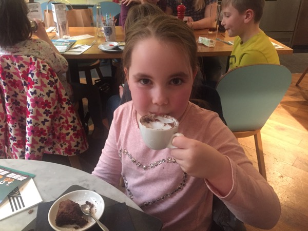 Hot frothy milk after visiting the art gallery, lunch and shopping.