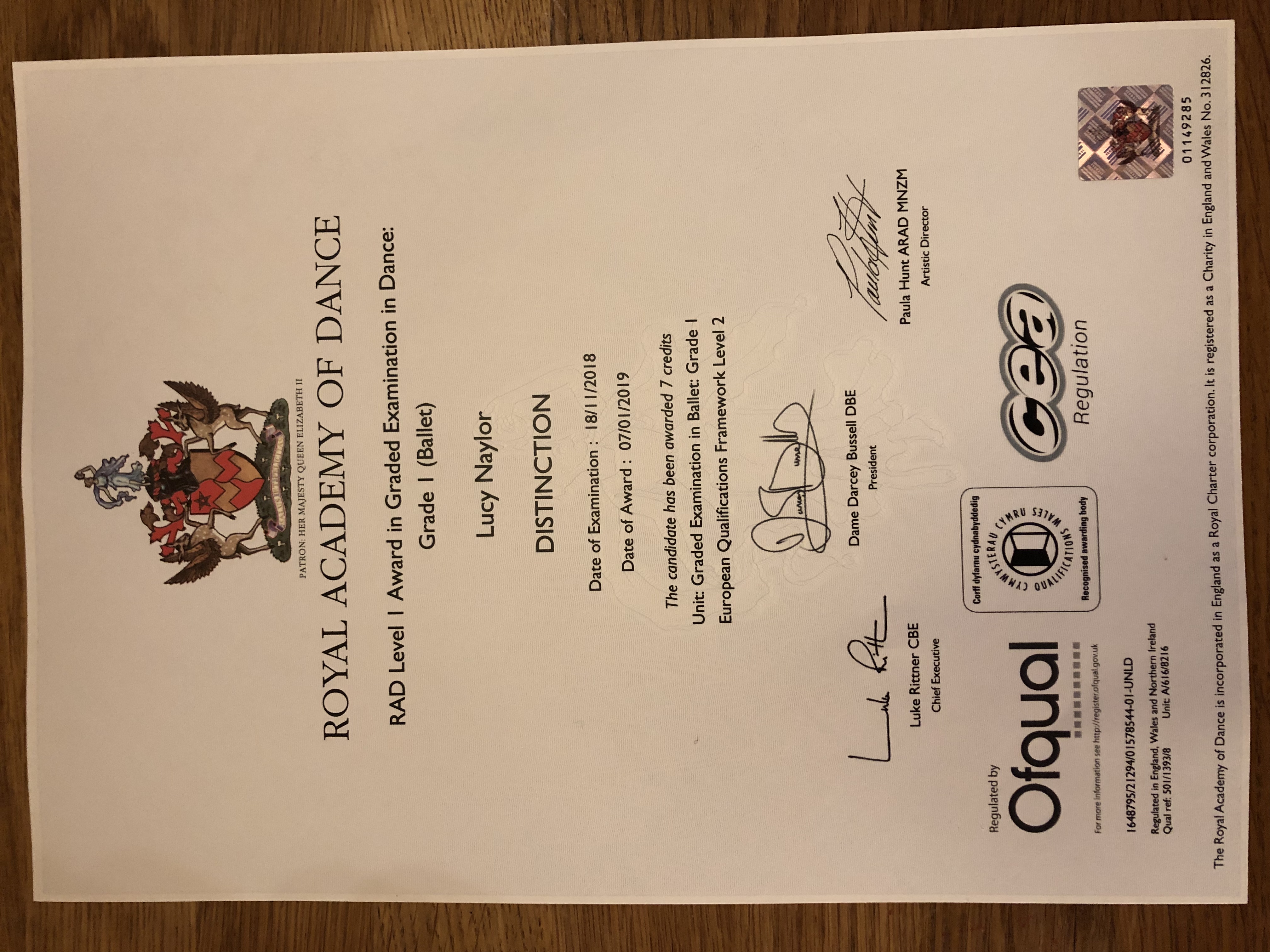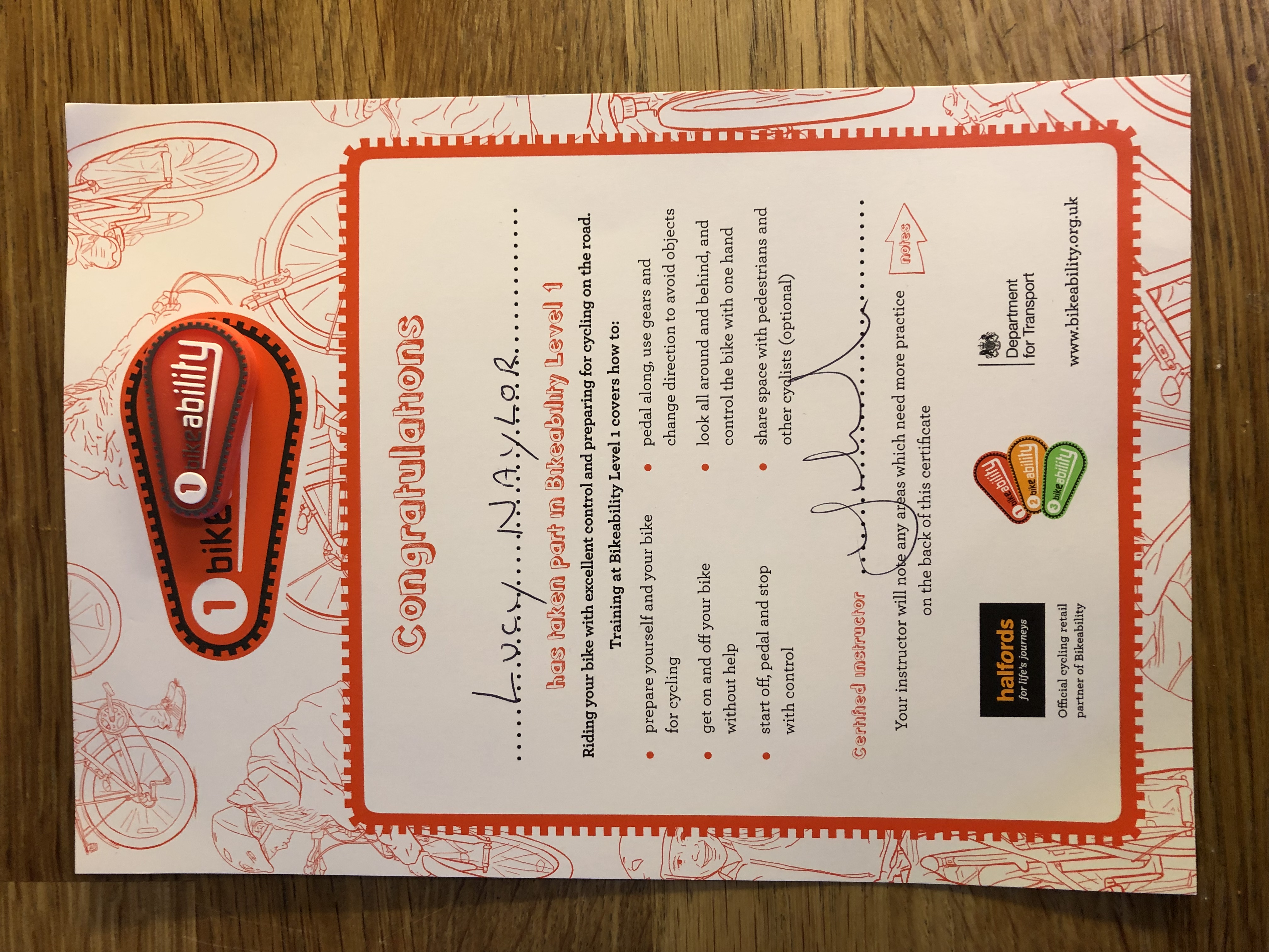 Congratulations to Lucy on spring term certificates awarded – Distinction for ballet grade 1, cycling proficiency and 5km run!