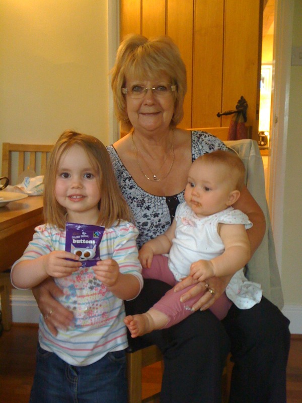 Lucy has her first chocolate button from Grandma!