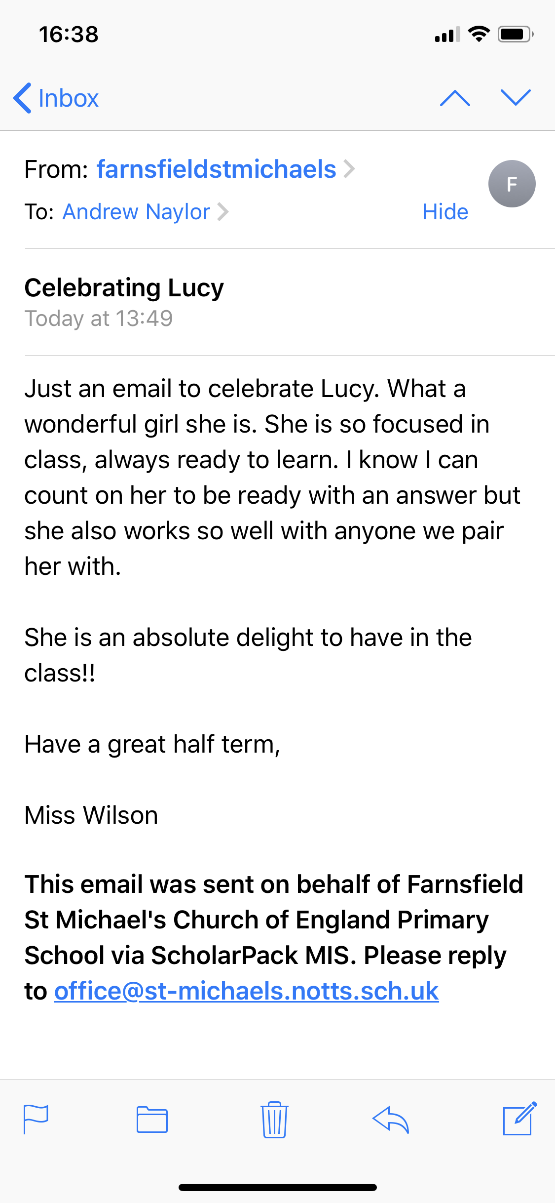 What a great message from Lucy’s teacher – very proud to be her Granny ❤️