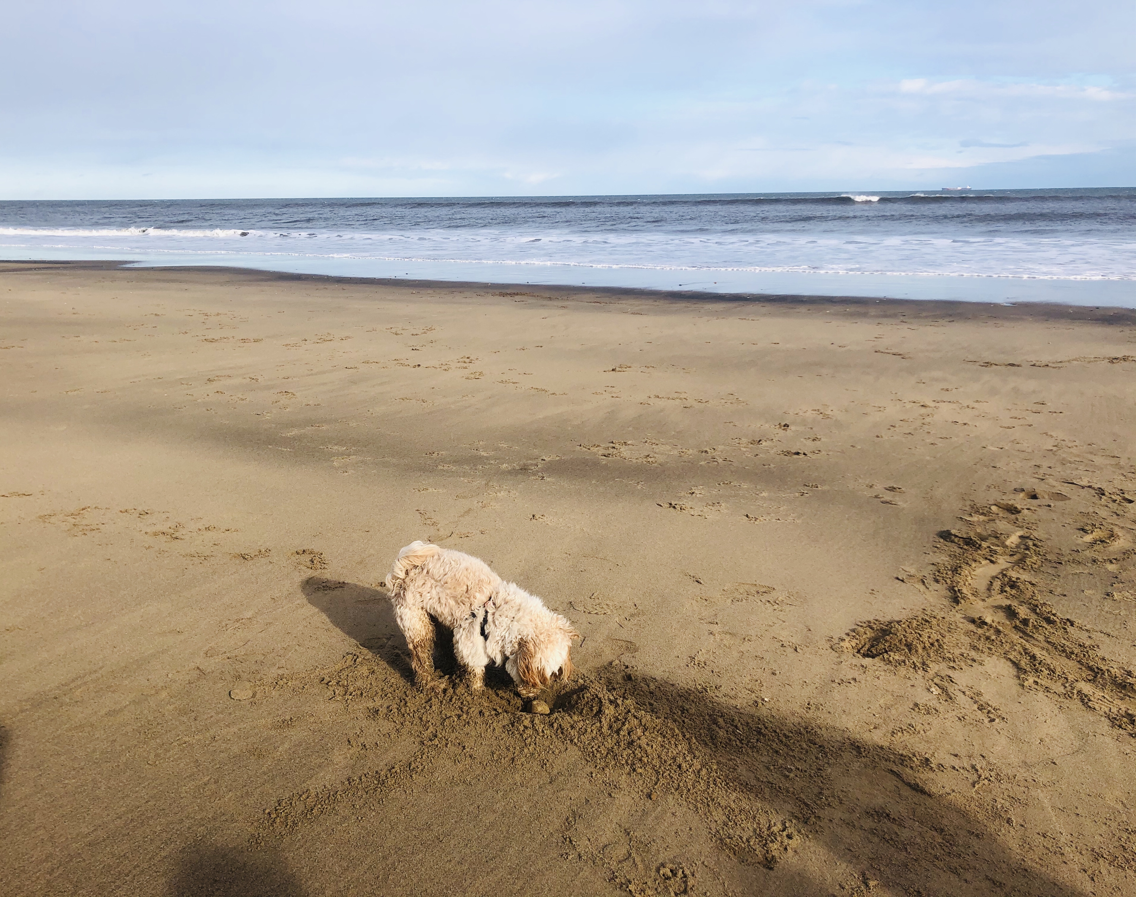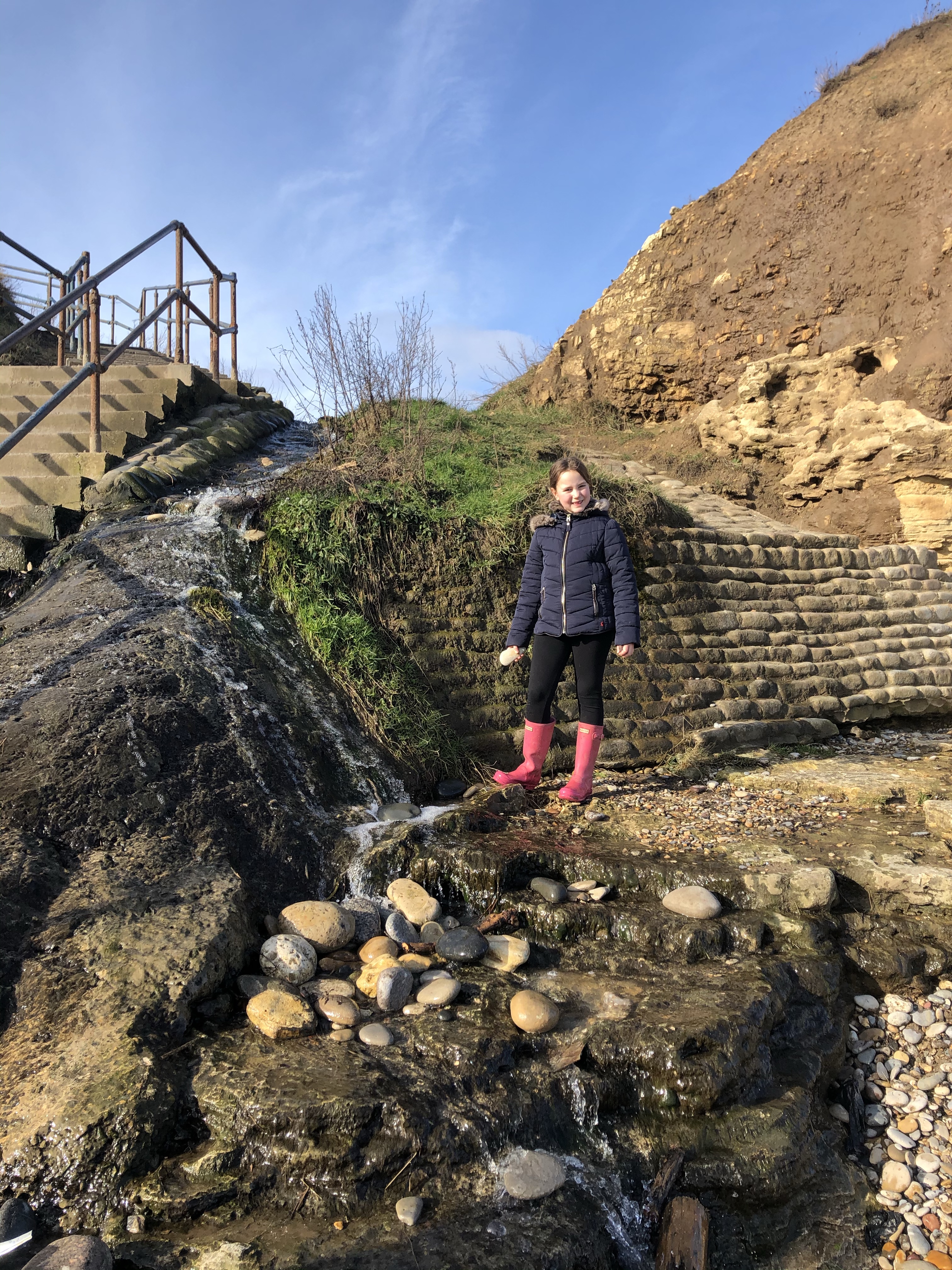 Wow looks really nice beach and coastline – blue sky and no rain ! Freddie enjoying it too ?. XX