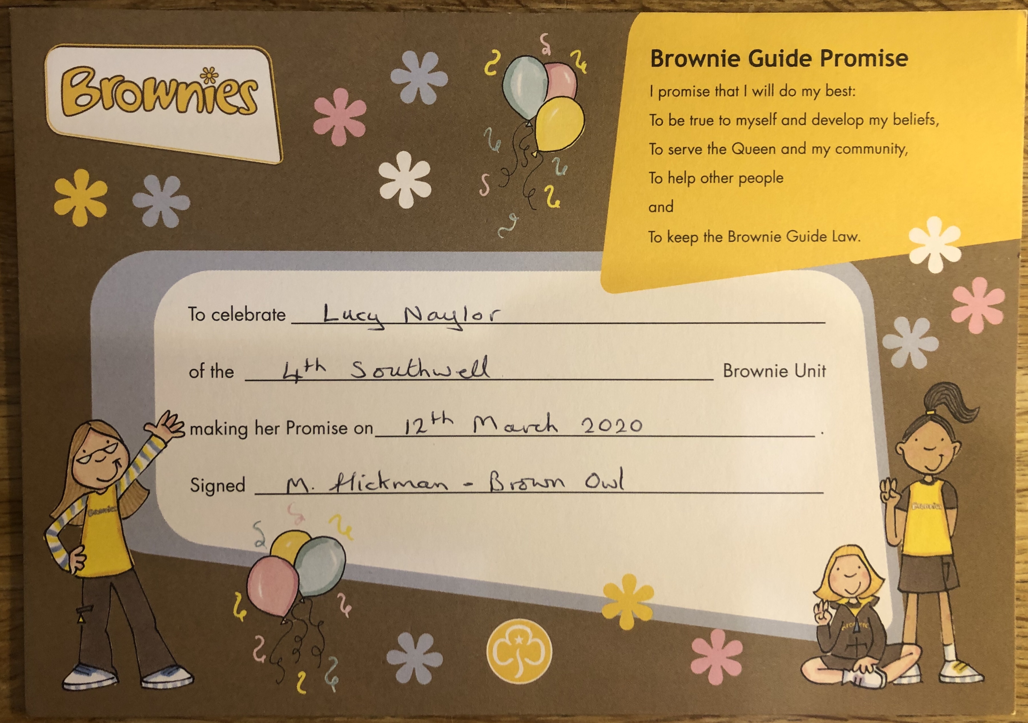 Lucy takes her Brownie Promise at 4th Southwell Brownies tonight ?
