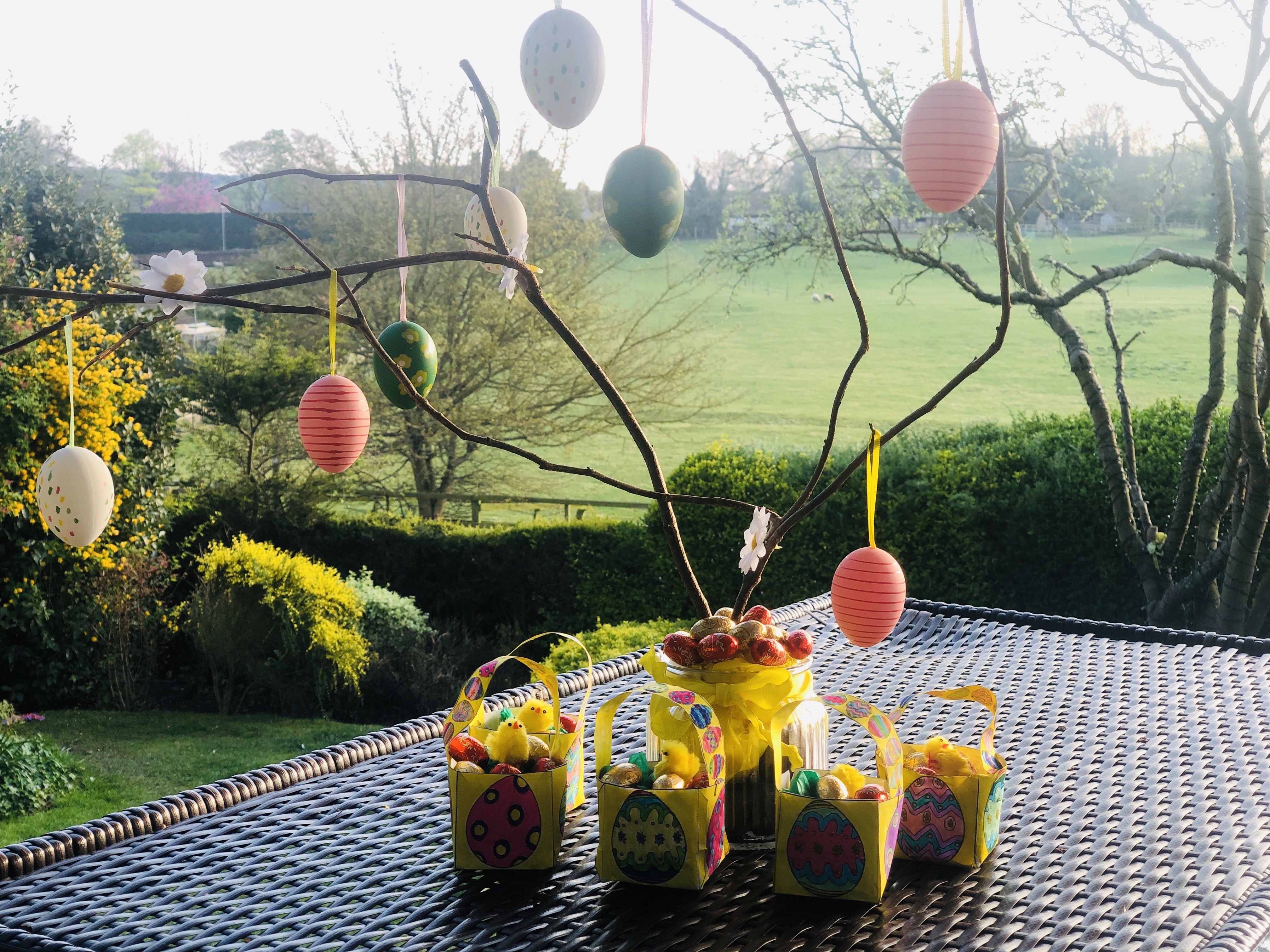 It’s Easter Eve! Bunny pancakes for breakfast, making Easter baskets and an Easter Tree ?