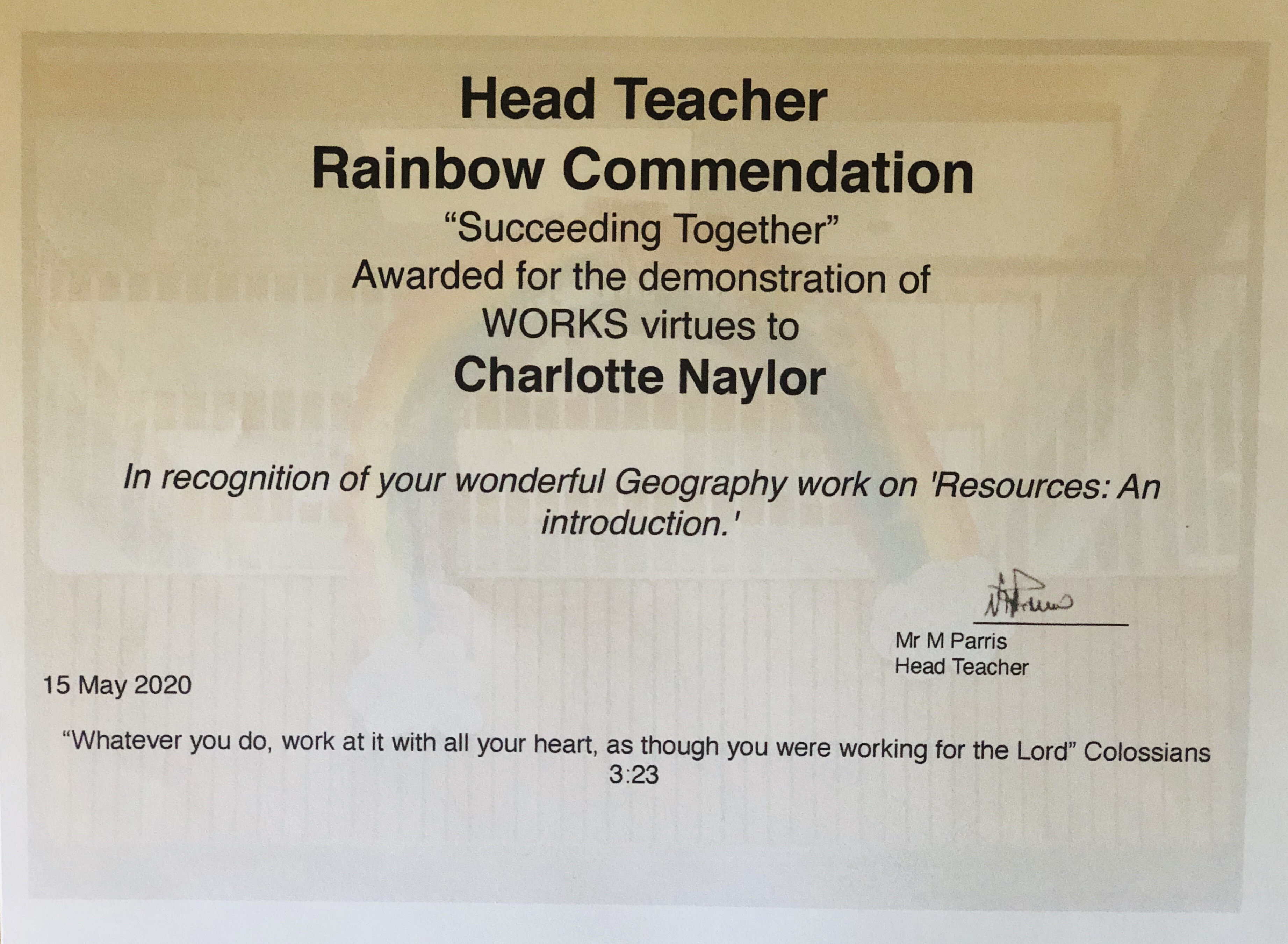 Charlotte that is a great achievement for Geography (favourite subject 🙁) with a Commendation from The Head Teacher at The Minster 👏 xx