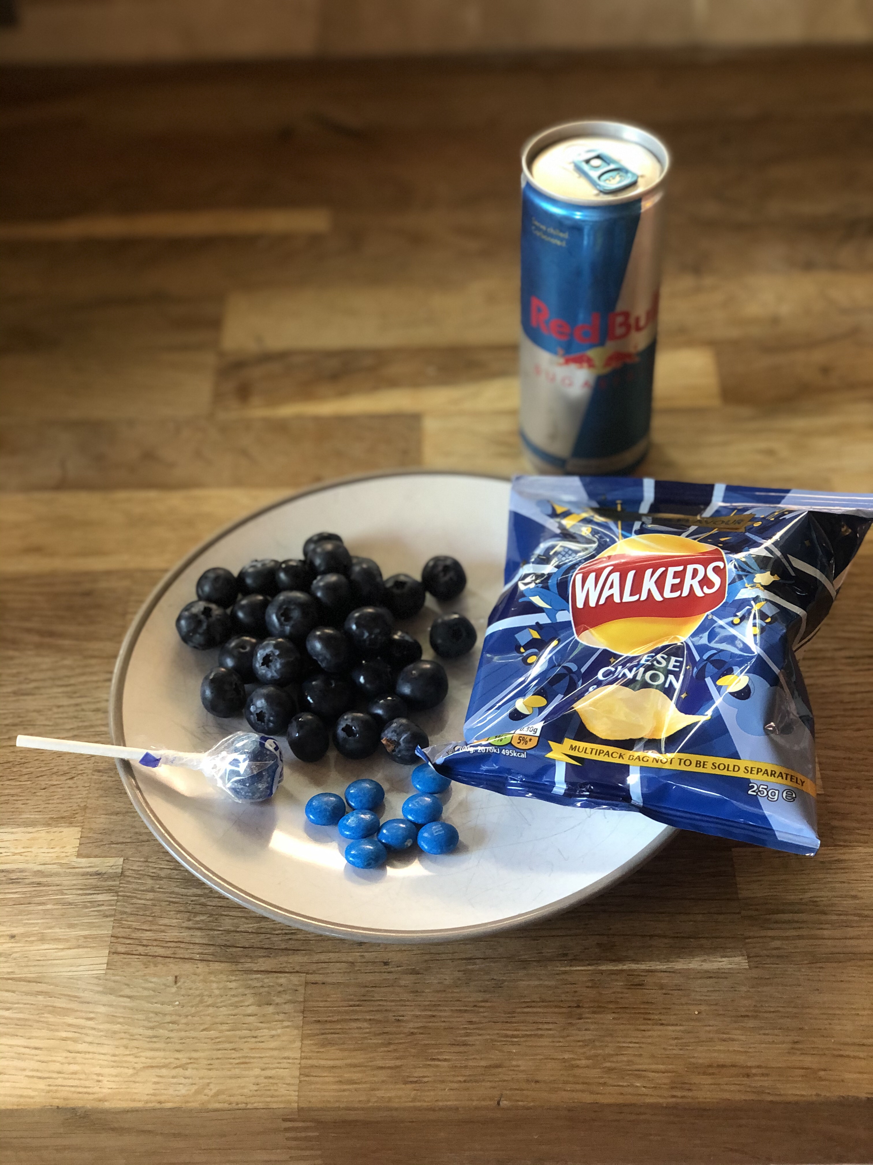 We both fancy Blue – Lucy’s crisps and blue smarties and lolly – yummy 😋