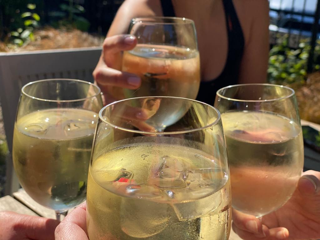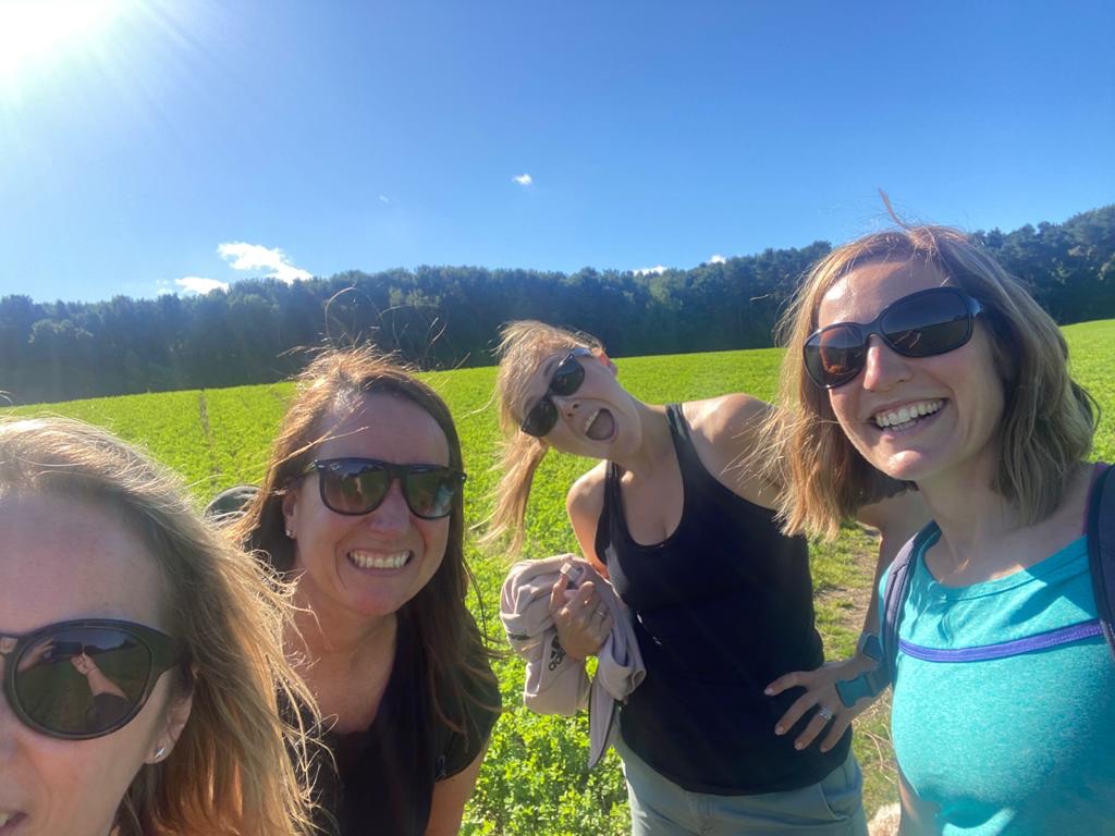 WOW super fit girls (an Freddie!) What a beautiful day for such a long walk and …… much need refreshment at The Bridge !! – well deserved Wine and Soda and Salmon salad 👏👏