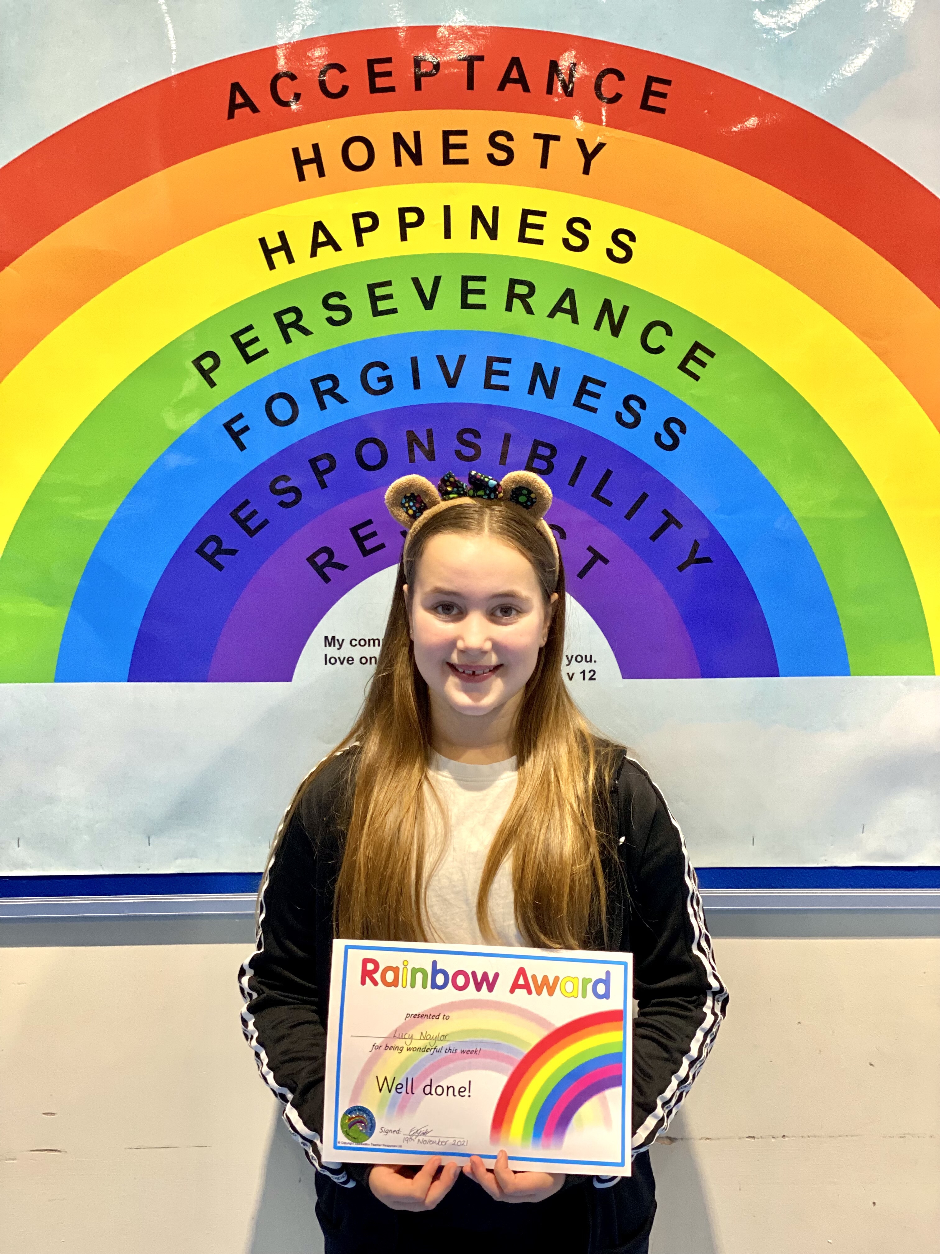 Lucy was given an award for her role as a Sports Leader by the PE teacher. He said she was a role model for the rest of the school for being an amazing, motivating sports leader in supporting and including all the younger children in games especially encouraging those that donβt usually join in.