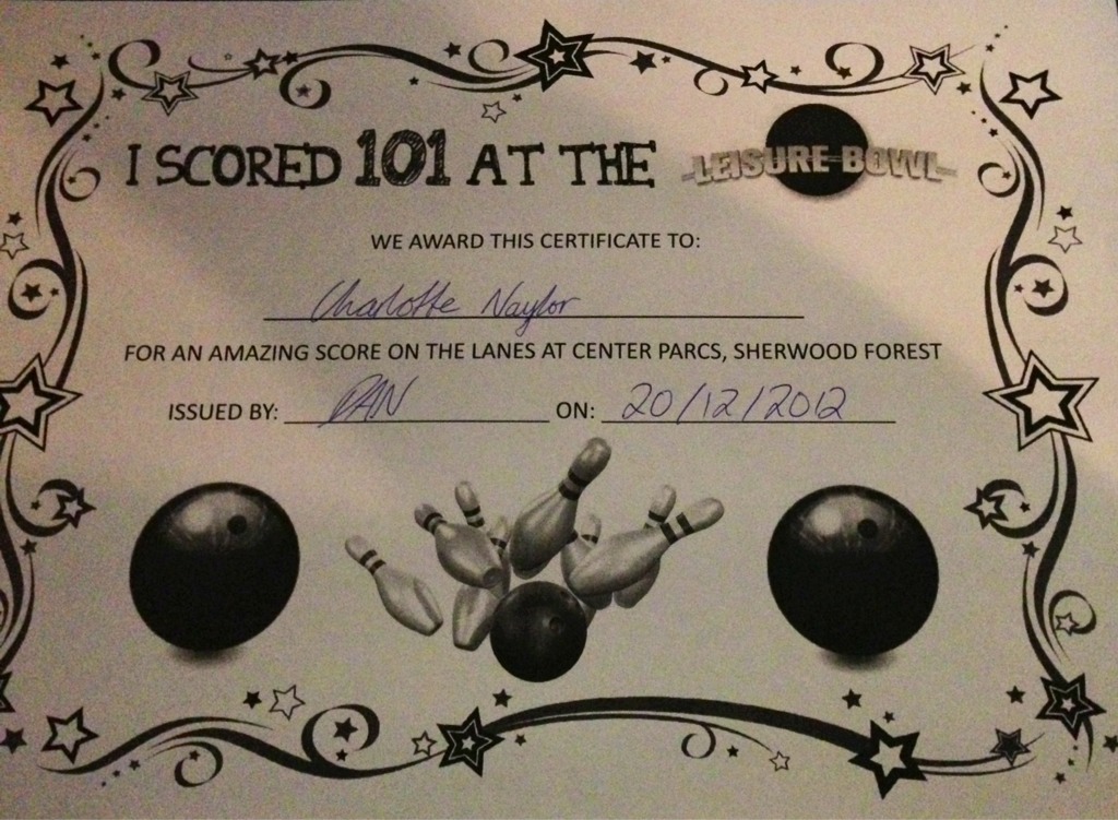 There was a bowling competition on today – anyone finishing on 101 won a special certificate and a drink! (Clearly she will be challenging for the Naylor Cup next year…!)