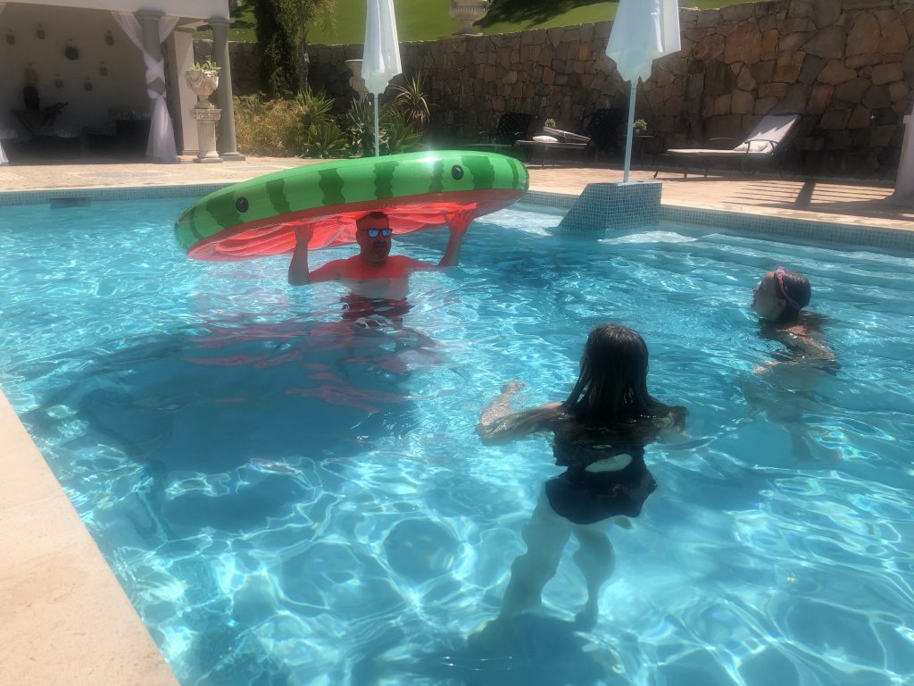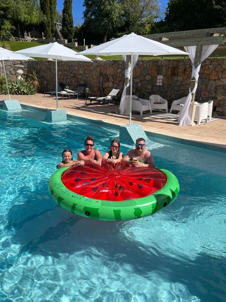Best £27 ever spent on the watermelon!Or is it a sombrero?!Or pool transport?!Cocktails in the pool gazebo!Veuve Rosè for the last evening 🥂Cheers with my gorgeous friend 🥂Ian’s salmon pizza on the smoker for dinnerFinal evening sunsetFilms on the rooftop terrace outdoor cinema screen!Many happy memories made, Portugal 2022 ❤️❤️❤️❤️