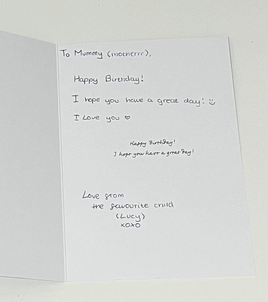 The ‘Best First Born Daughter’ and ‘The Favourite Child’ card comments make me laugh so much!