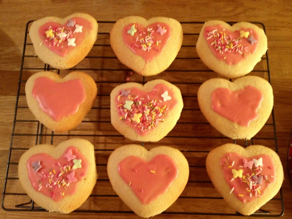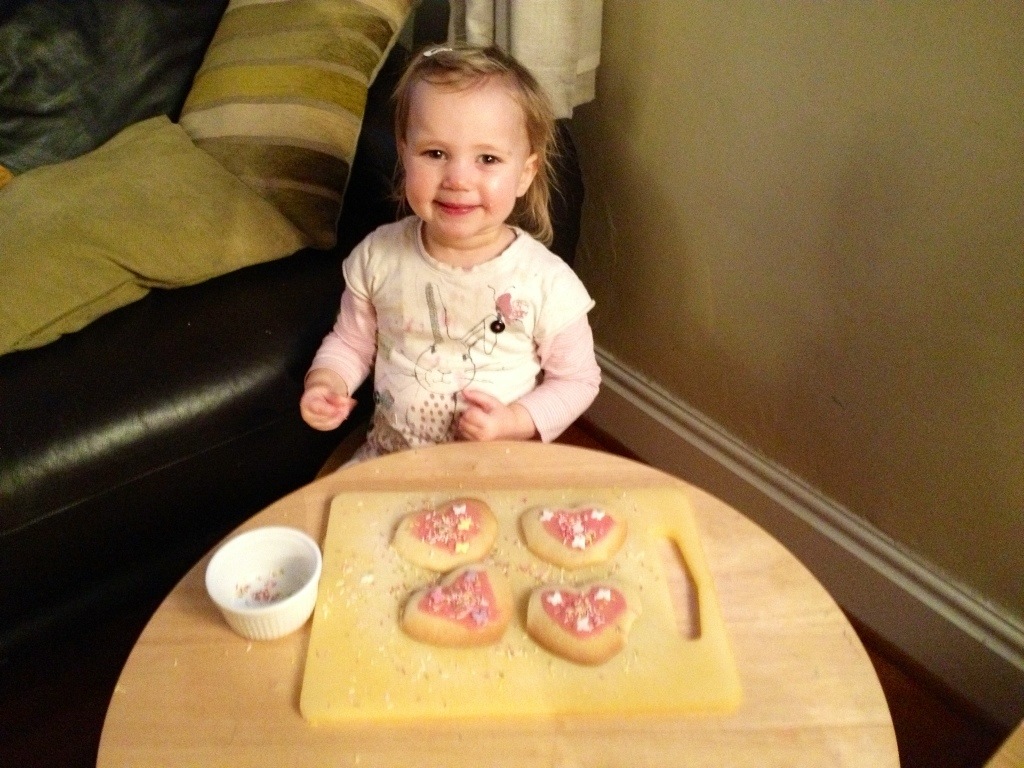 What fun you have been having girls. These Valentine cookies look yummy – Daddy will be pleased. Love from your GrannyXX