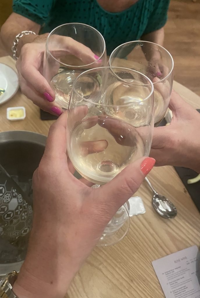 Gin on the 19th‘Mumm’ champagne Dancing queens!Watching the sunset from the PavilionDinner at the Mulberry restaurantReally Debs…?! Okay, we are doing it! 😝Apple smoked cheese apparently…!