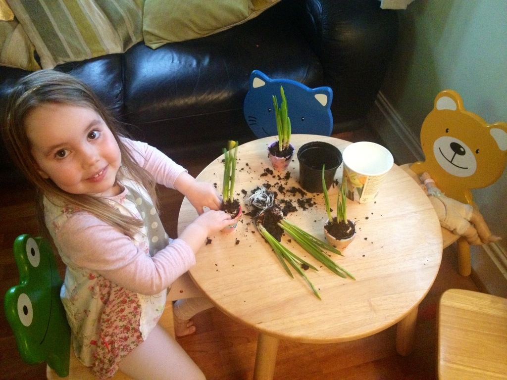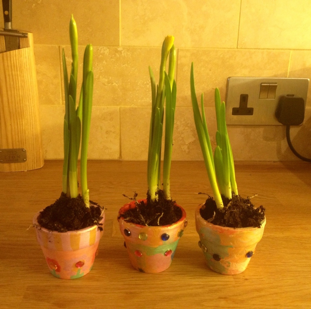 What a lovely time you two girls must have had with Mummy, firstly painting your pots and then planting some baby bulbs which you will be able to see grow into beautiful Daffodils which means Spring will be here, and then Summer……. XX