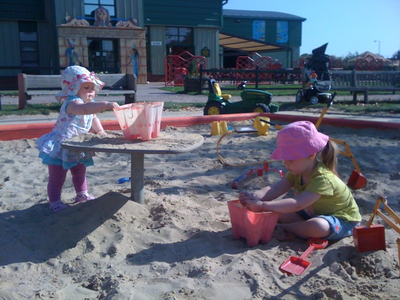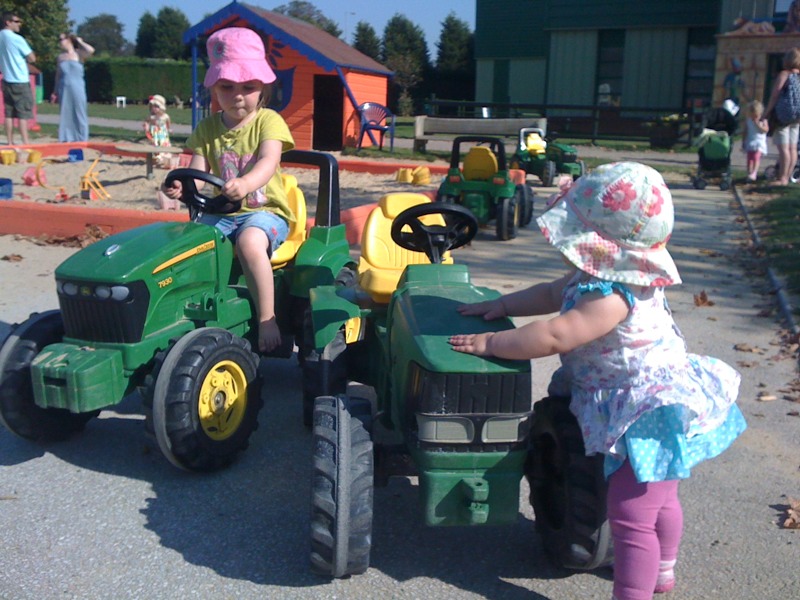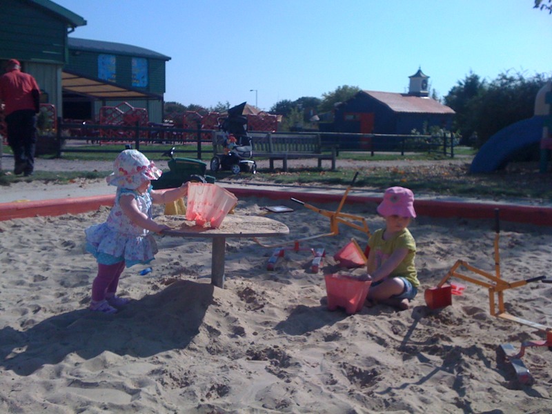 I asked Charlotte what would be the best day out for her today and she said building sandcastles at the seaside….so we had to use our imagination find the next best thing…a big sandpit and a boat! (and a tractor is always a bonus!)