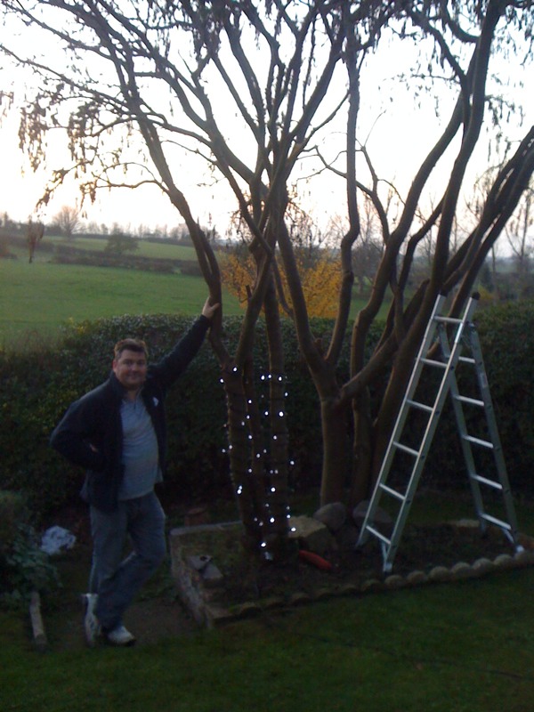 Christmas is coming…! Andrew’s getting the tree lights ready in the garden!