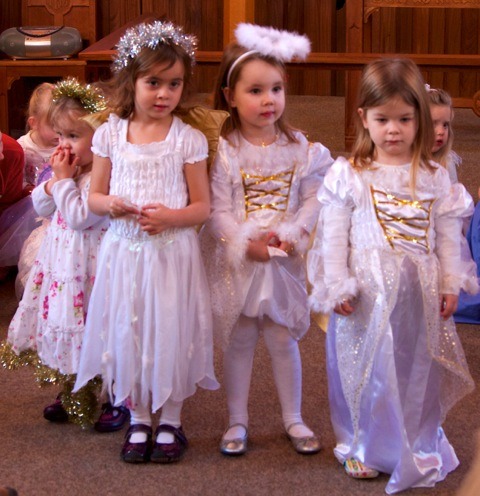 ‘Angel’ Charlotte in the preschool nativity