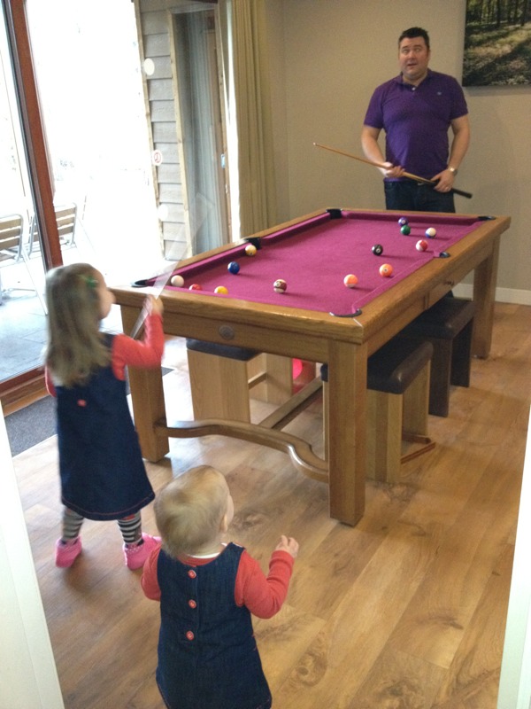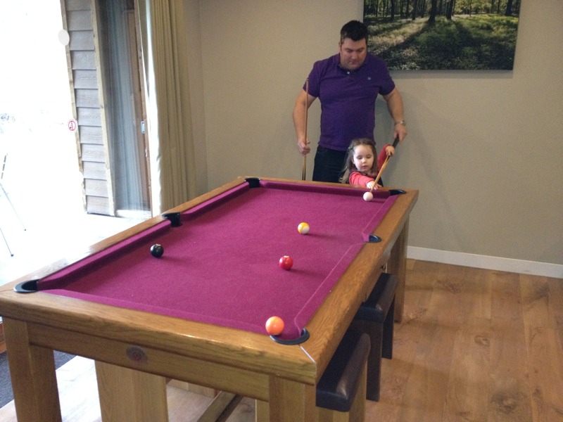 We have a fab games room in our lodge at Center Parcs with a pool table and PS3 etc