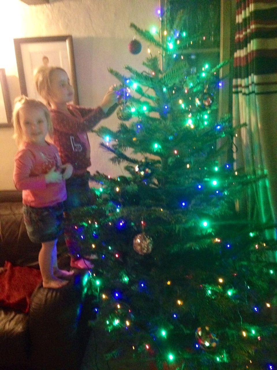 Lovely tree & lights well done girls. Love grandma &Peter.