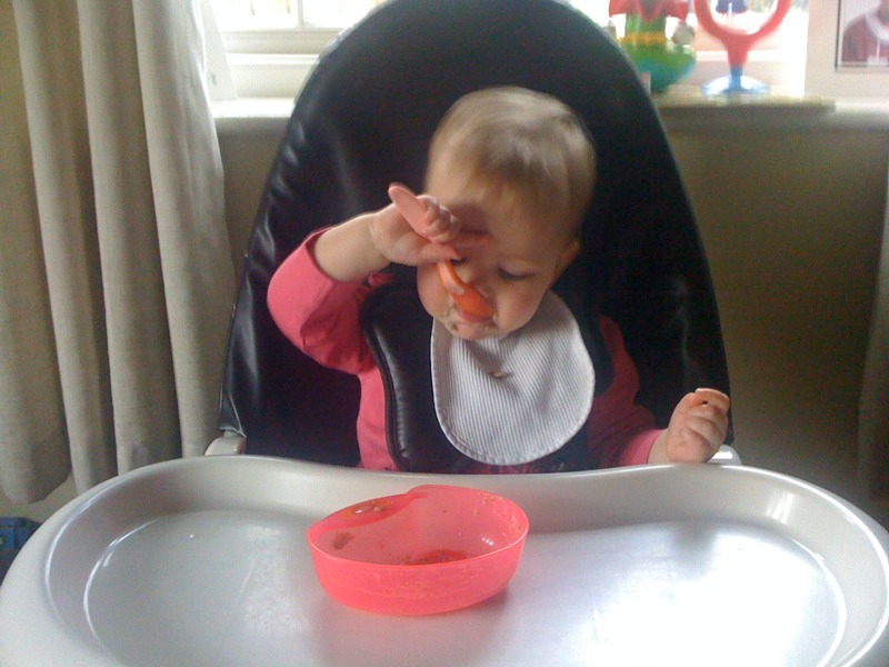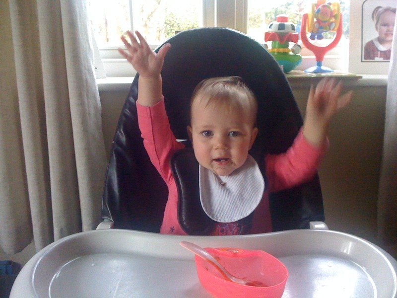 Lucy has eaten her weetabix all by herself for the first time without getting it all over herself!